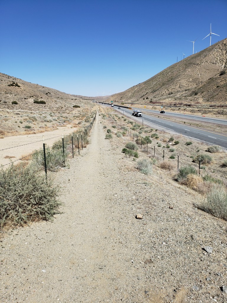 For a mile near Tehachapi, the trail parallels California Route 58 in order to get to an overpass to cross the road. Very noisy.