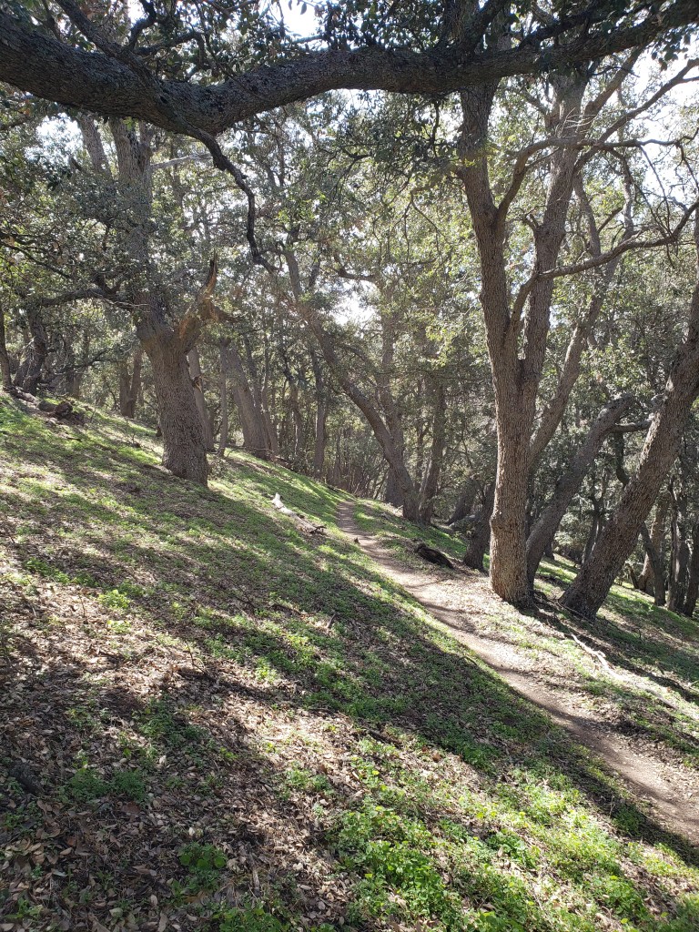 After making it to the ridge, I was hiking through partially open meadows and then an oak forest. It was great to see grass and trees after a day and a half in the desert.