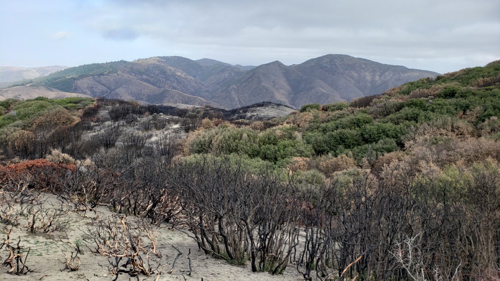1. Where the roots of the bushes weren’t completely incinerated, there were green shoots emerging. But there was a lot of land that was completely torched so there was nothing growing yet. Those places will need seeds spread by the wind to start the rebirth. I plan to do a write up on all this when I take my 1st one week break. That break starts tomorrow.