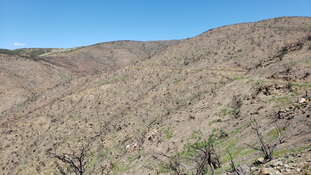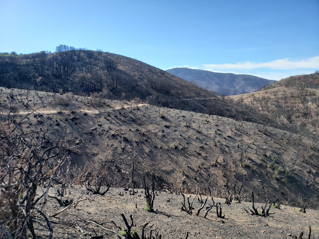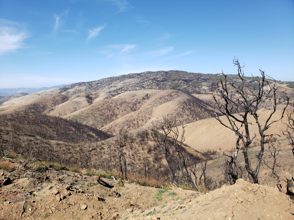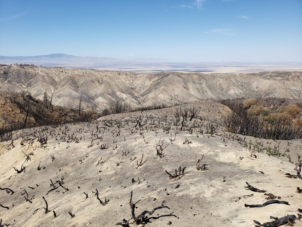I’ve previously posted video footage of a 360-degree view from the heart of the decimated 2020 Lake Fire burn zone near Lake Hughes. I’ve also posted several photos from the edge of that fire zone, including one of where I camped one night.