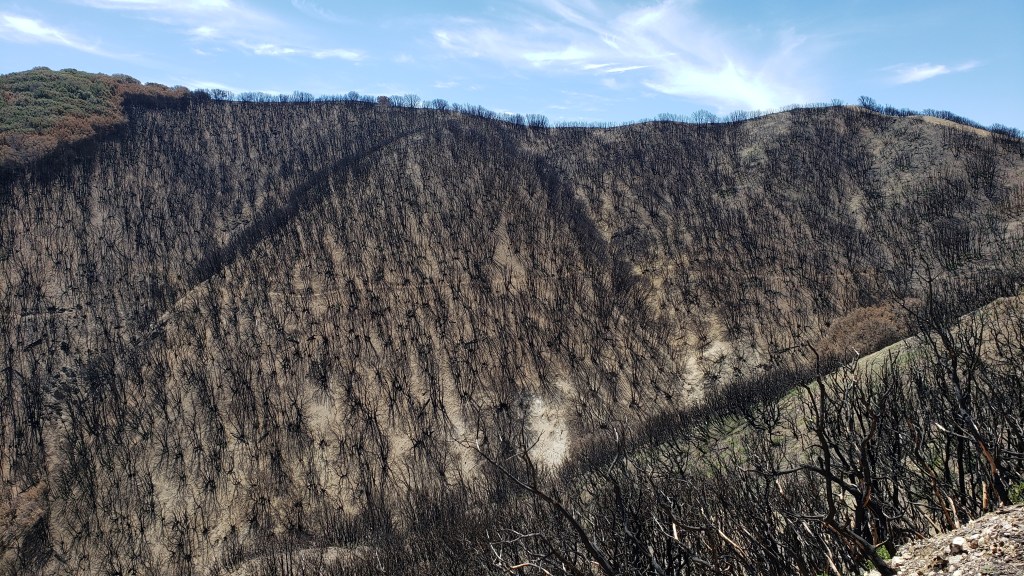 Here are more photos of burn zones from the 2020 Lake Fire, the 2020 Bobcat Fire farther south in the Angeles National Forest, and from wildfires which took place in previous years.