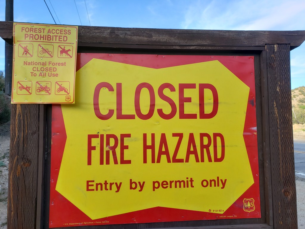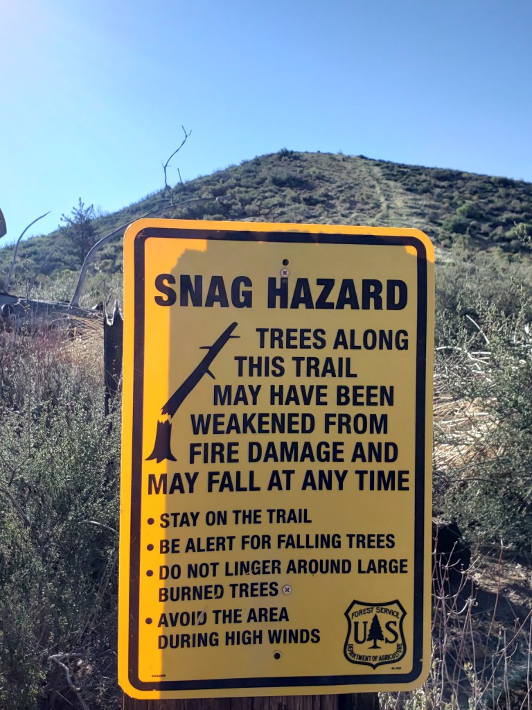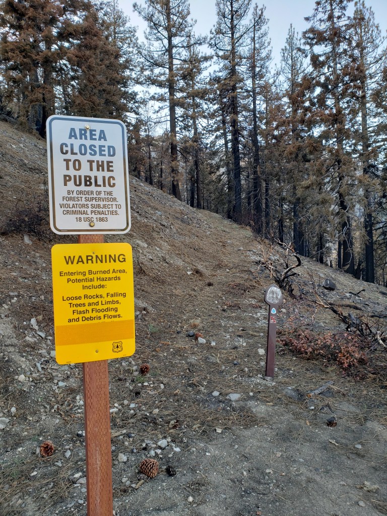 I hiked through the Lake Fire burn zone even though it was actually closed. I didn’t know it was closed, however, because there was no signage for southbound hikers. Just signage at the southern border of the zone for northbound hikers. (See sign below.)