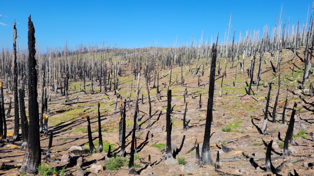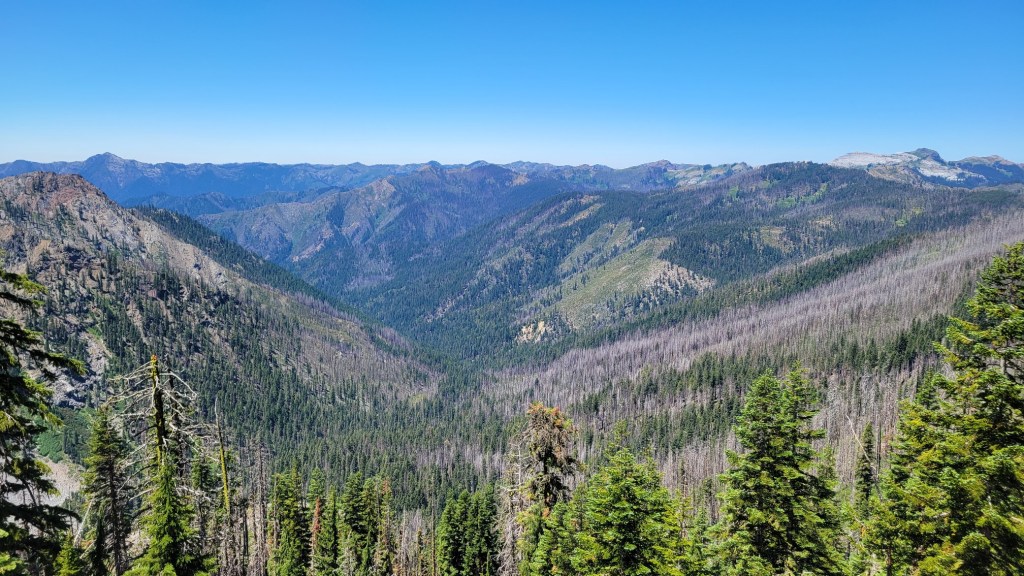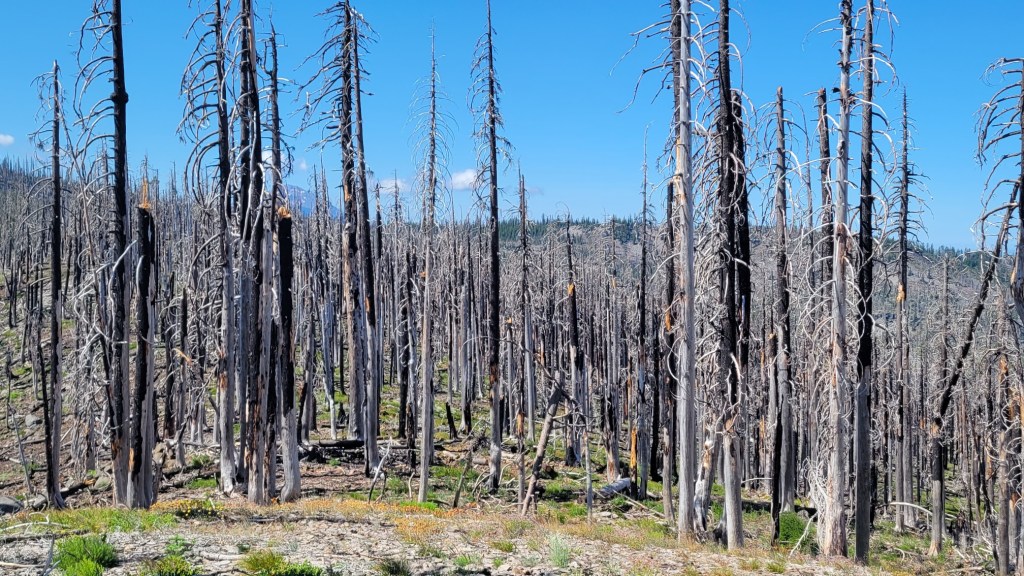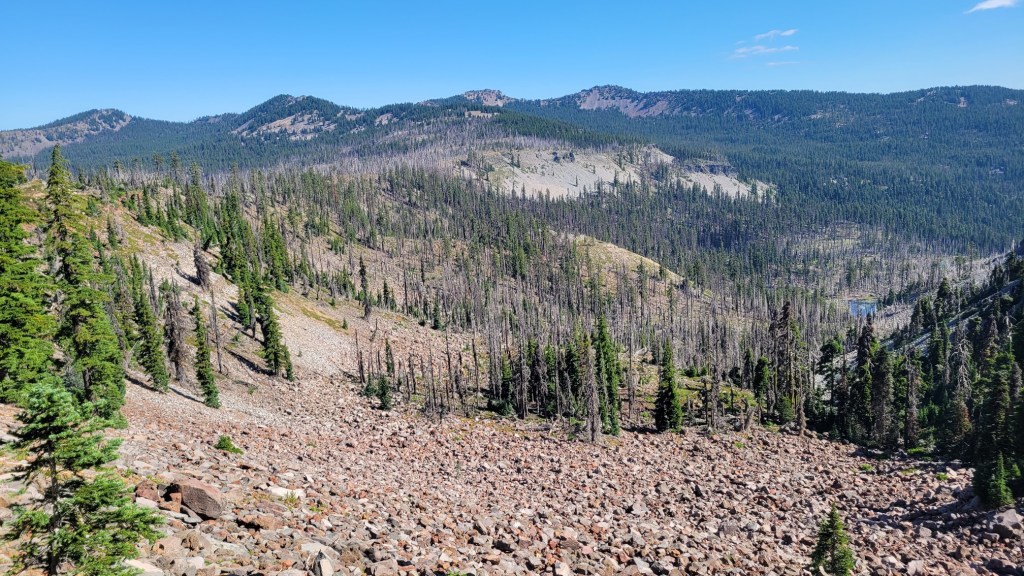 Here are photos from the last month of my PCT hike — July 9th to August 1st. After my July 4th break, I got back on the trail near Etna, CA, which is west of Yreka. I then hiked to Santiam Pass, OR, which is west of Bend. That’s 400 trail miles. I now have 1450 miles under my belt since I began my PCT flip-flop on April 3rd.