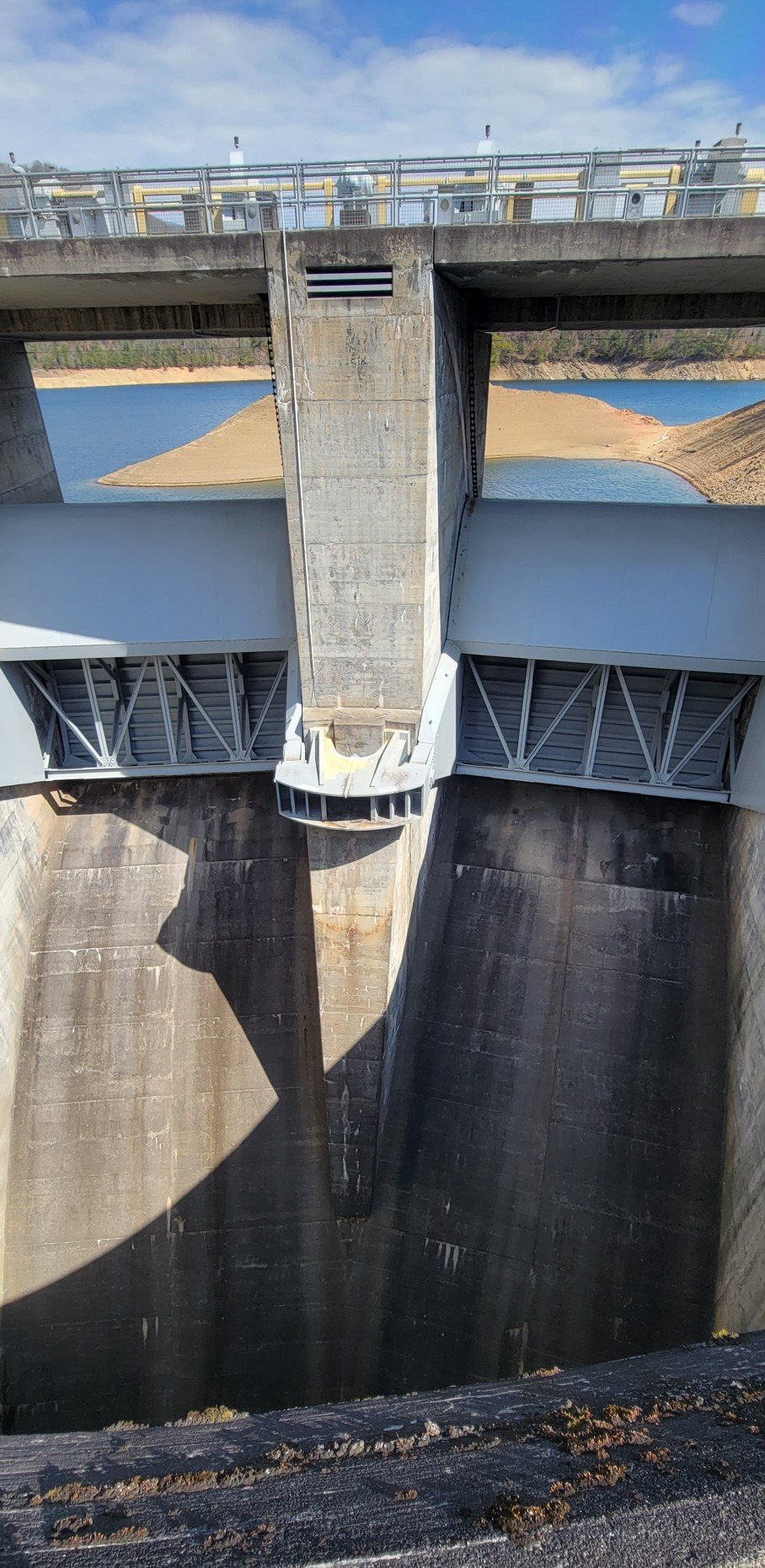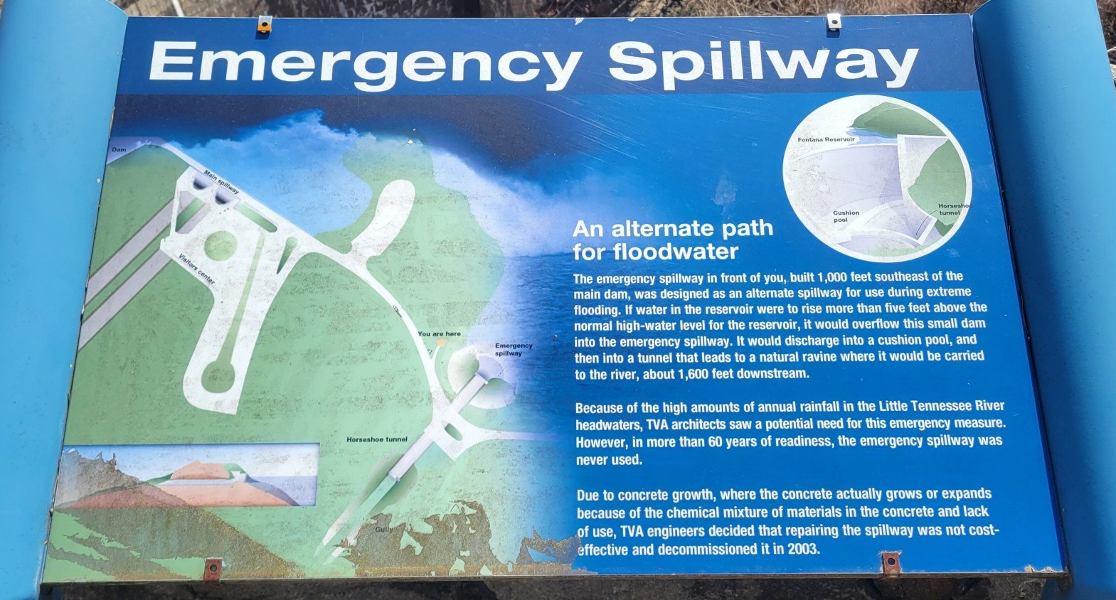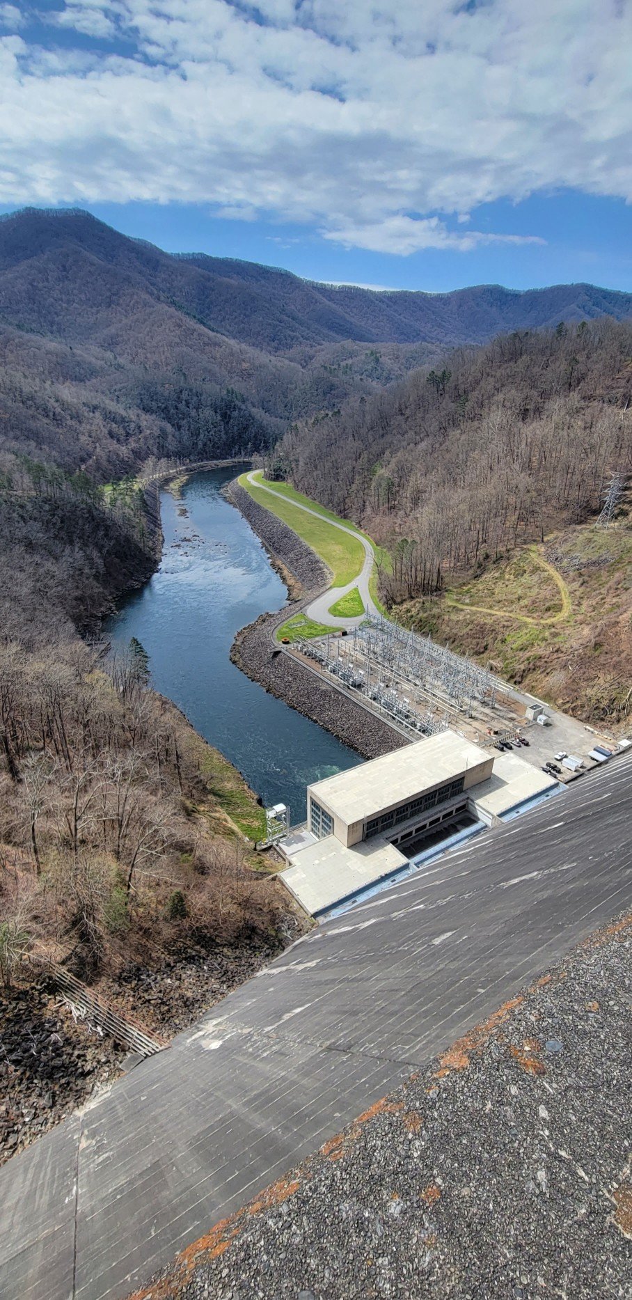 Fontana Dam is part of the Tennesse Valley Authority (TVA) public works project of the 1930’s and 40’s. It is built on the Little Tennessee River at the south end of Smokey Mountain National Park. It is the highest dam in the US east of the Rockies.