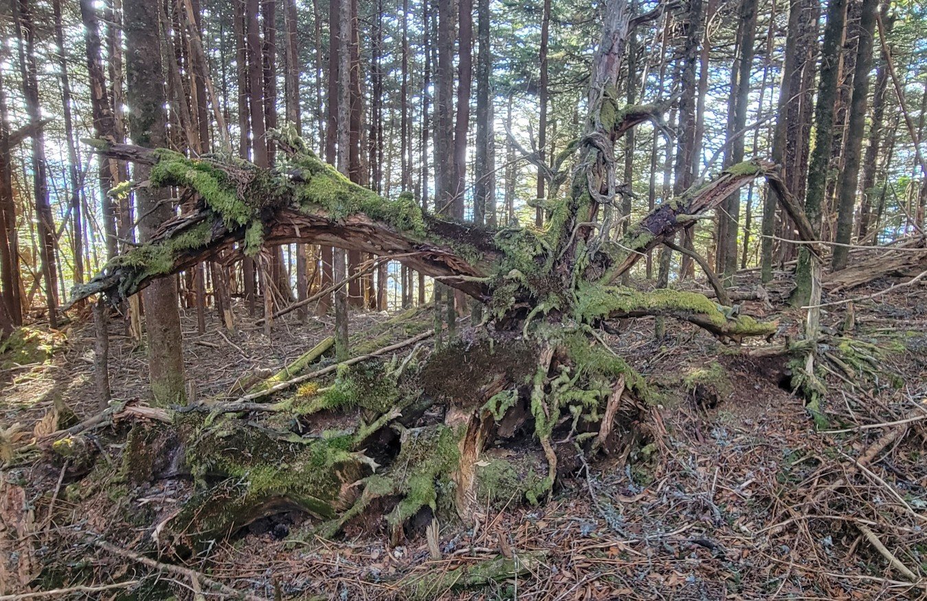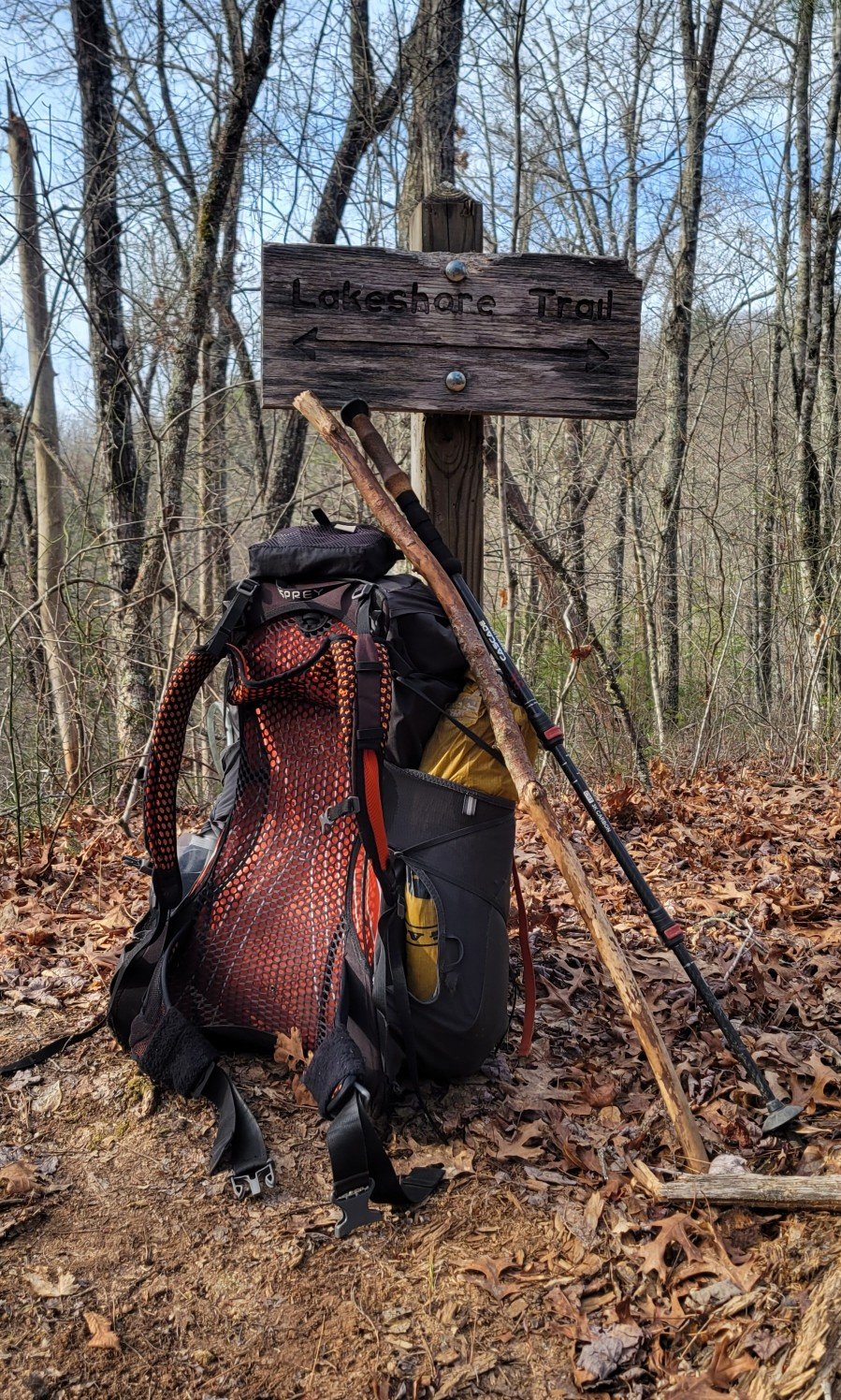 At mile 150, I lost my footing crossing a creek. I didn’t fall in, but in steadying myself, I let go of one of my carbon hiking sticks. It disappeared into the current, never to be seen again. I had to make do with a found wooden stick. In less than two days, I went through two sticks which broke. Here’s the third stick I used. It got me through 100 miles.