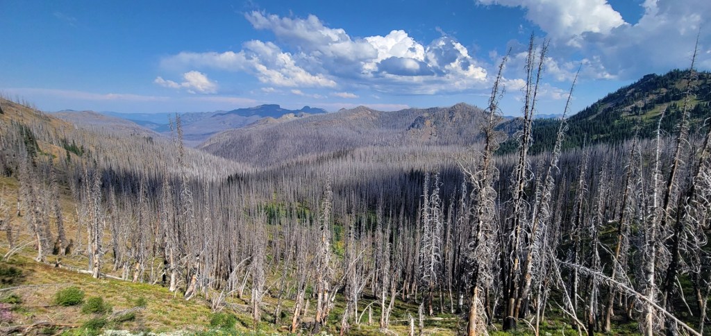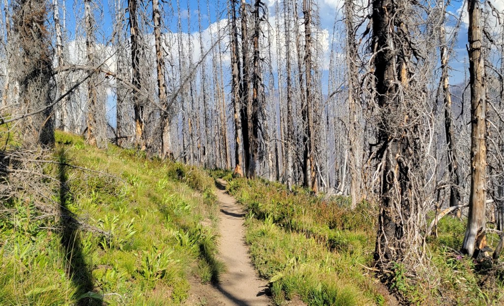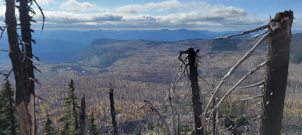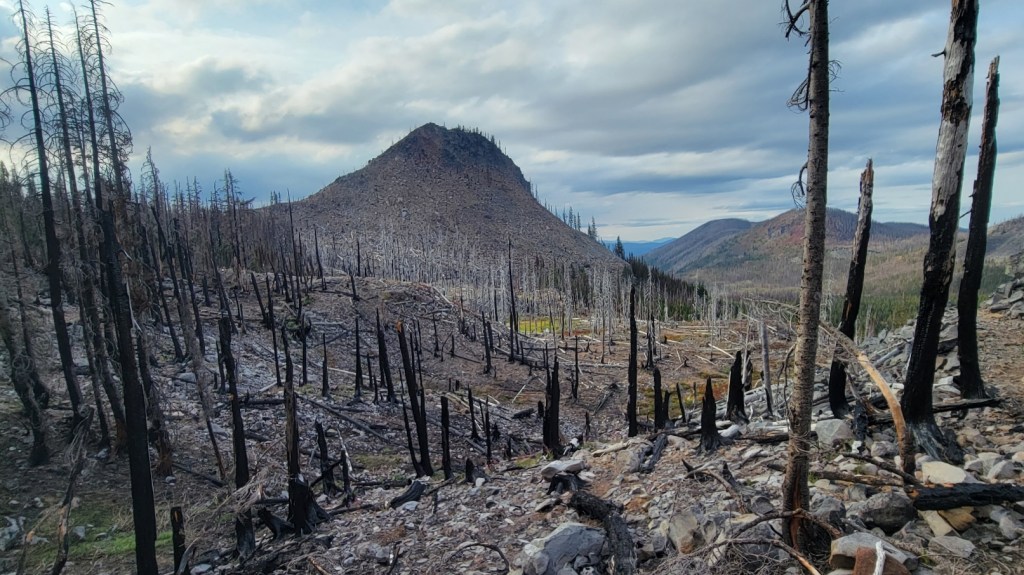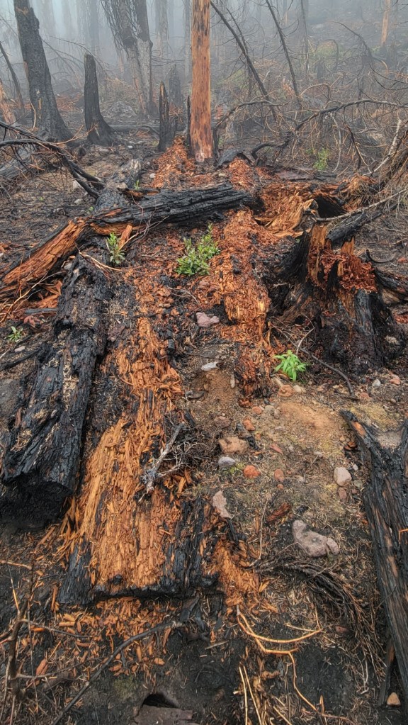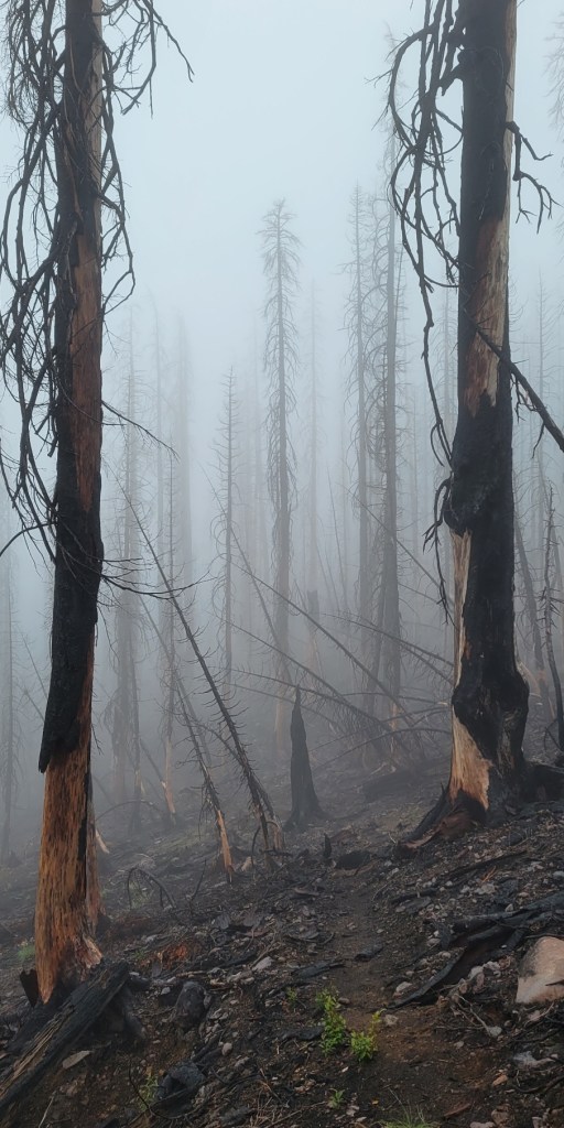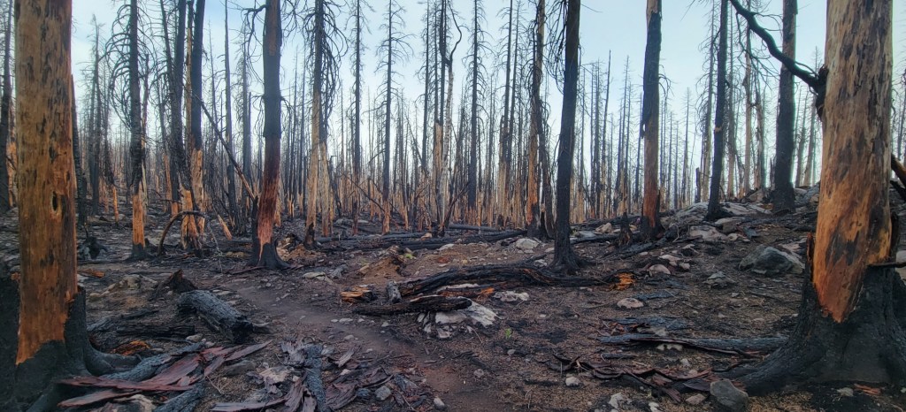 Wildfire is the new norm on the PCT. Fire interrupted my hike four times last year and one time this year. I walked through miles of fire-scarred country in both years. Here are photos which show that.