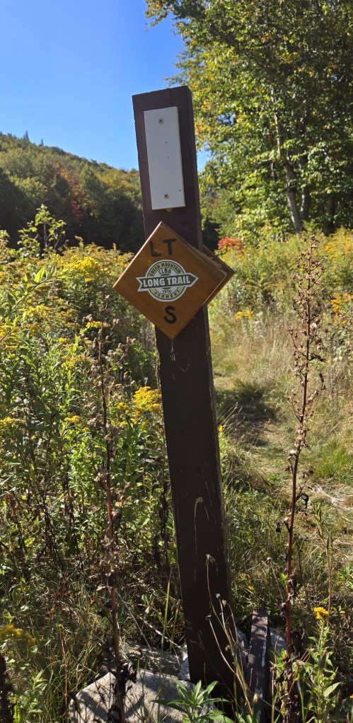 The Appalachian Trail follows the Long Trail for 106 miles in southern Vermont before it diverges to the east at “Maine Junction” to head towards Maine. Both the Long Trail and the Appalachian Trail use white paint blazes to mark the trail.