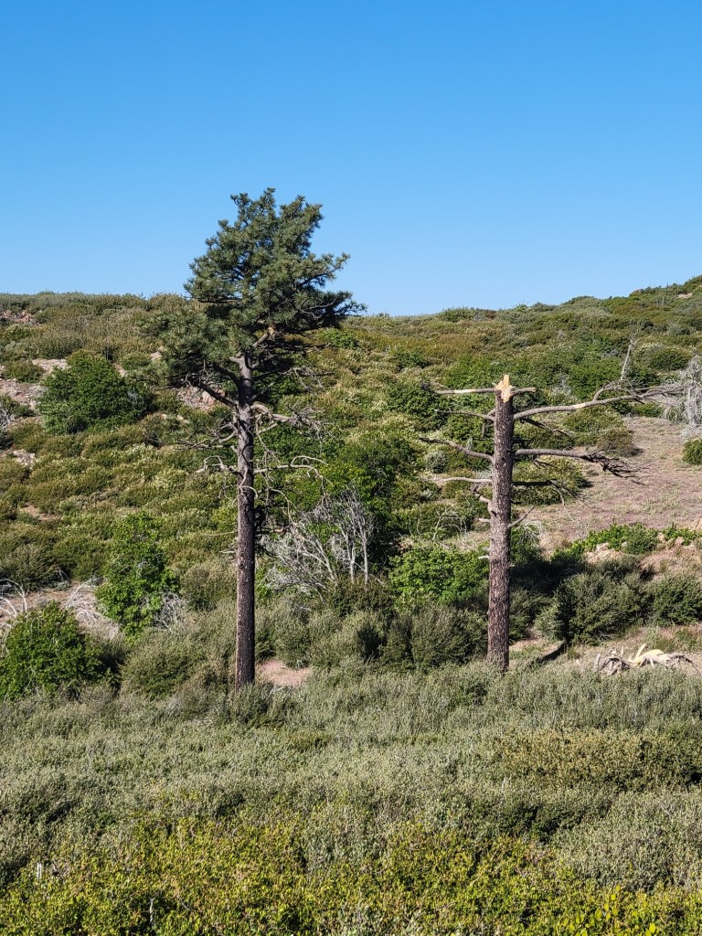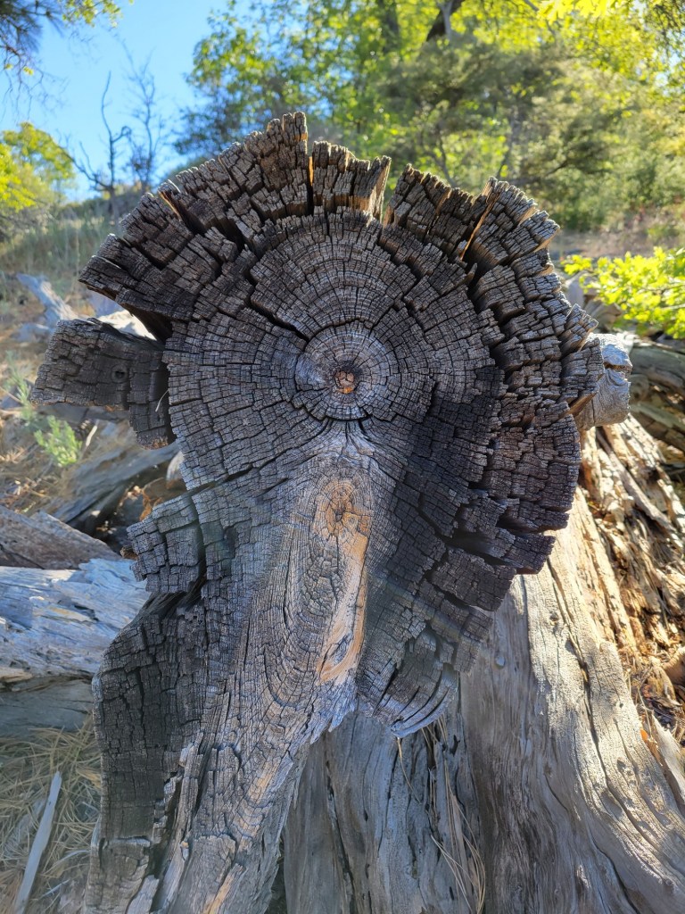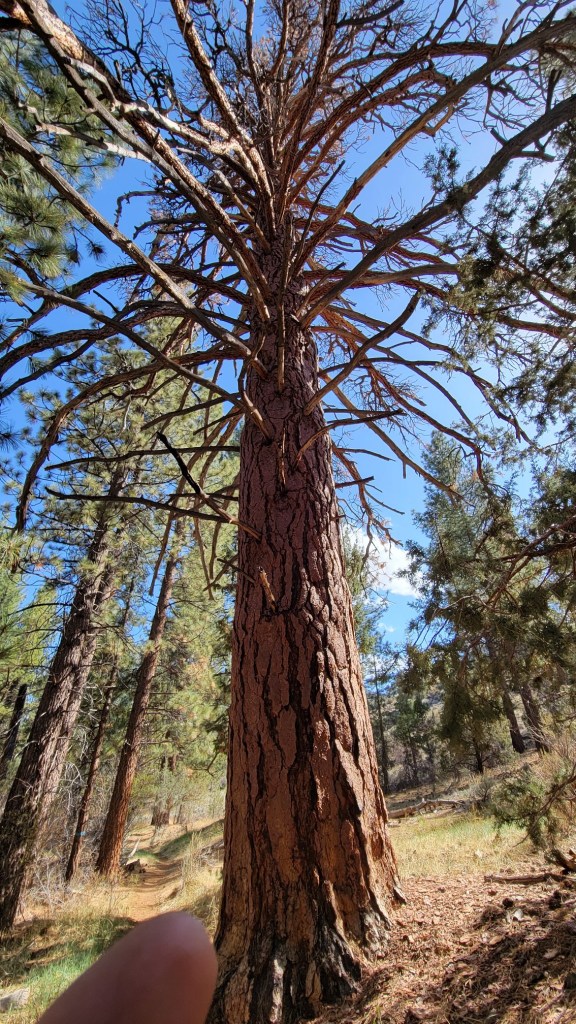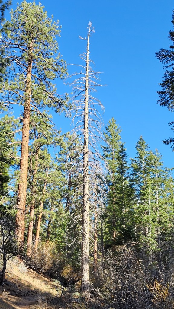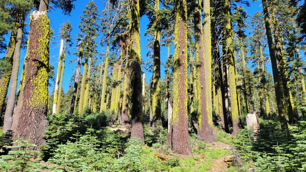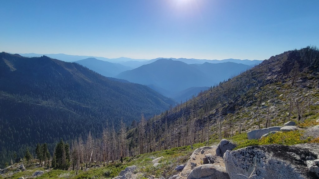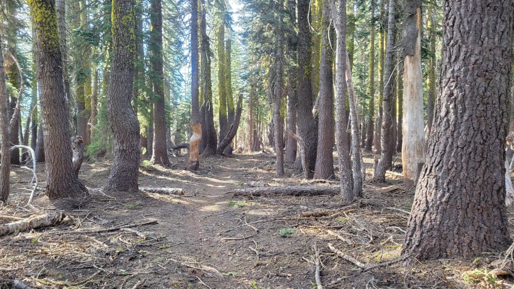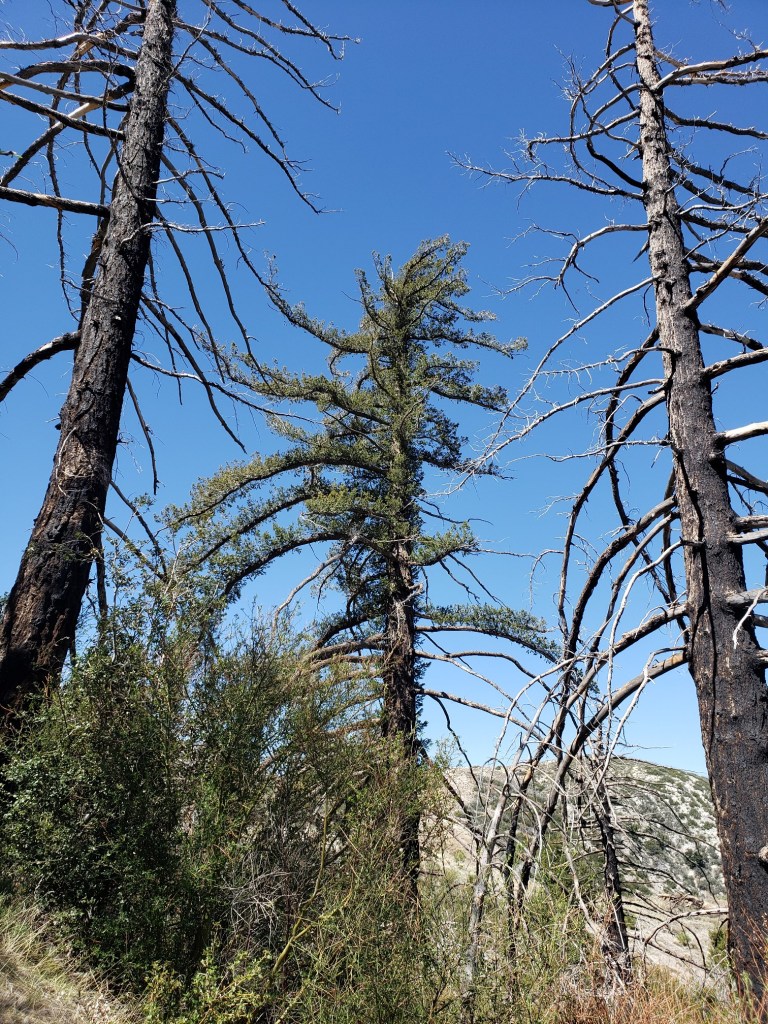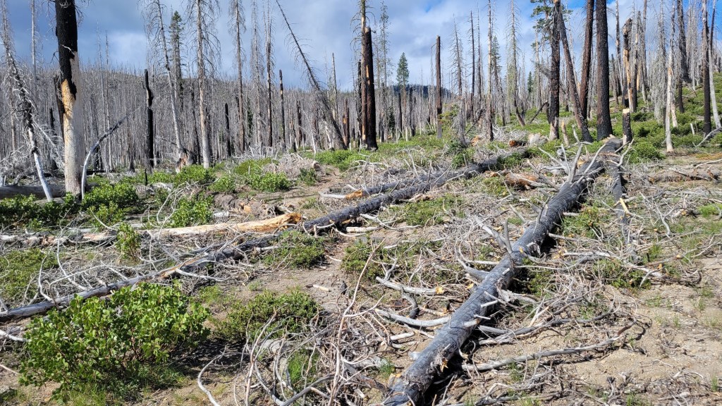 I’ve been passing through more fire zones in far Northern California and Southern Oregon. At least a part of every day over the past 10 days has been spent walking through cathedrals of burnt trees. In addition, there have been numerous active fires visible from the trail.