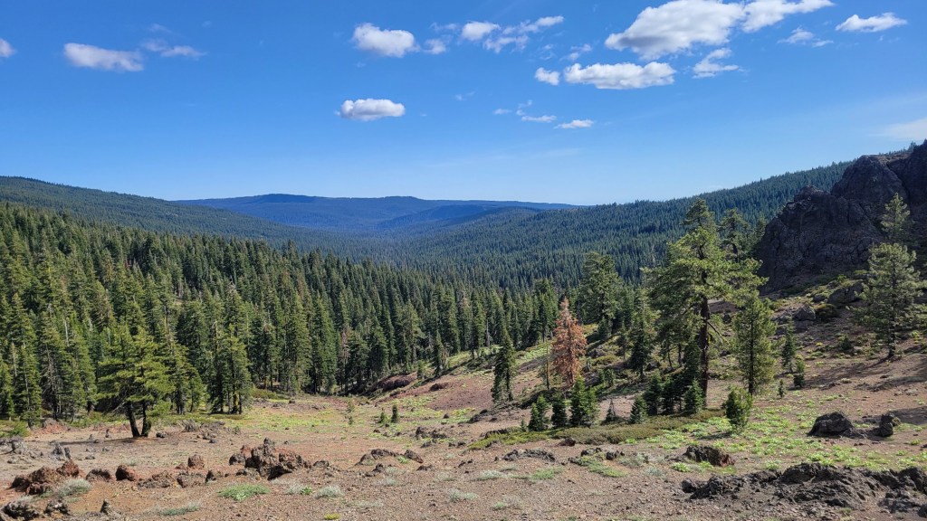 Here are photos from the last month of my PCT hike — July 9th to August 1st. After my July 4th break, I got back on the trail near Etna, CA, which is west of Yreka. I then hiked to Santiam Pass, OR, which is west of Bend. That’s 400 trail miles. I now have 1450 miles under my belt since I began my PCT flip-flop on April 3rd.