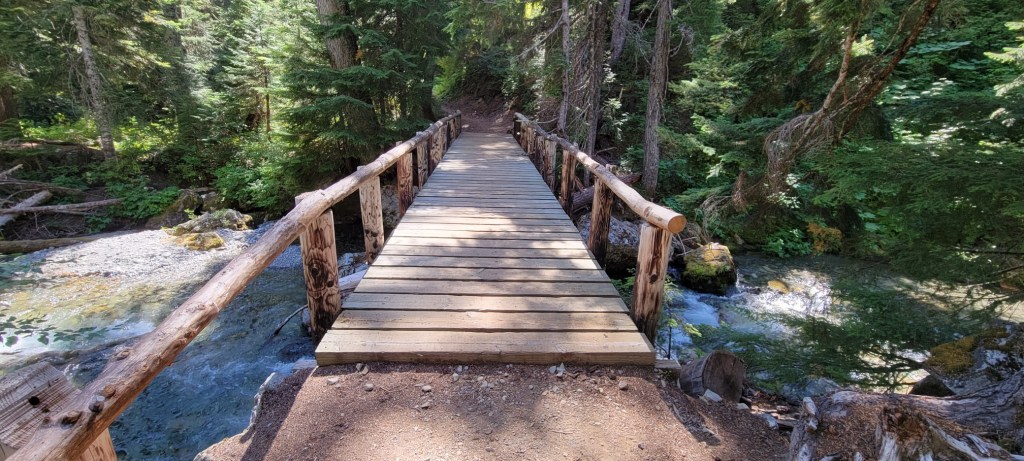 The rugged Northern CascadesSnow in the summerAlpine lakesMt. Rainier in the distanceCathedral PeakWooden bridge over a mountain creek“Larry the Log,” an Iraqi War veteran is carrying a 20-pound log on his shoulder from Mexico to Canada on the PCT to raise money for St. Jude’s Hospital. Last year, he did the same thing on the Appalachian Trail. Next year, he plans to do the same thing on the Continental Divide Trail.A “wood chicken”